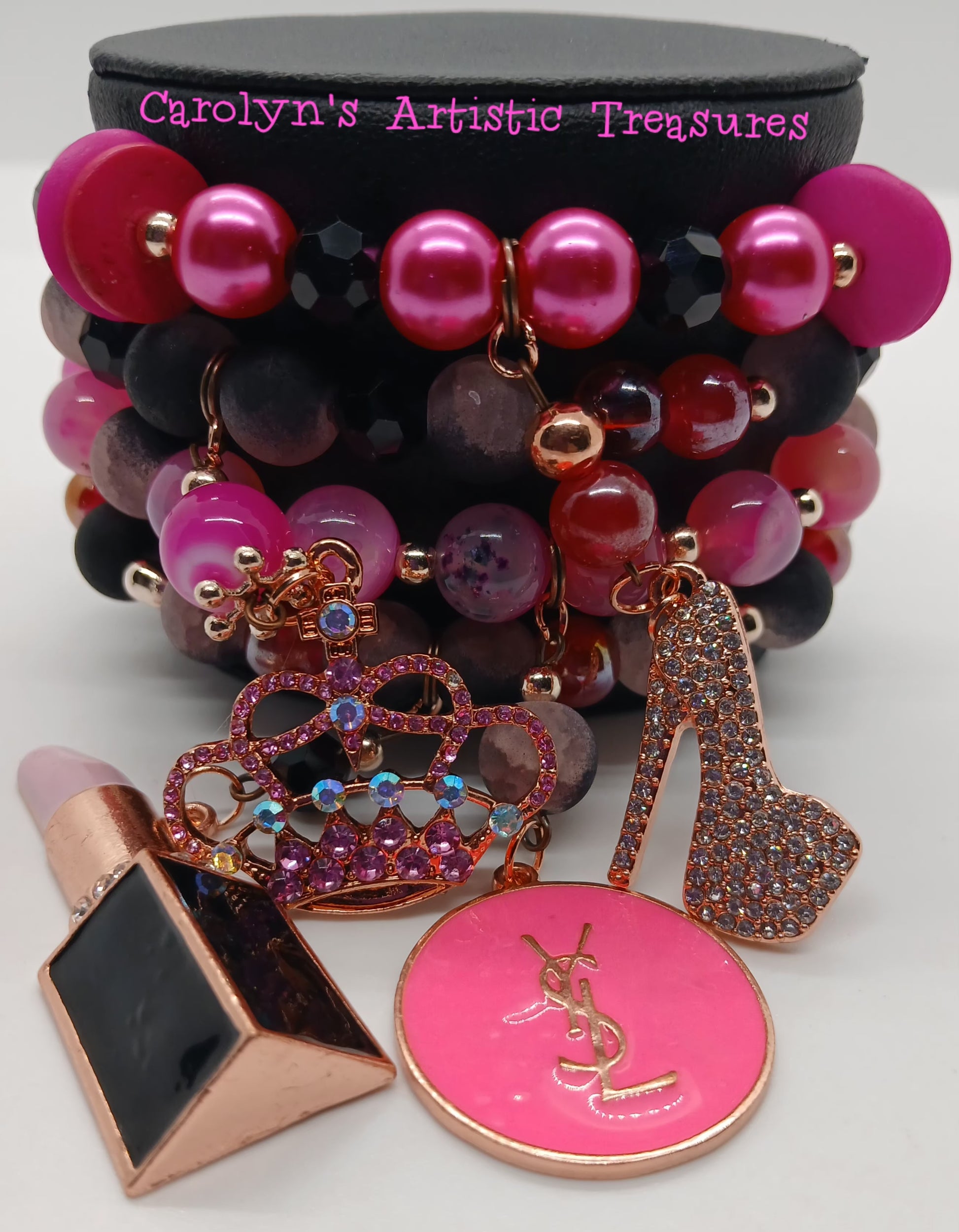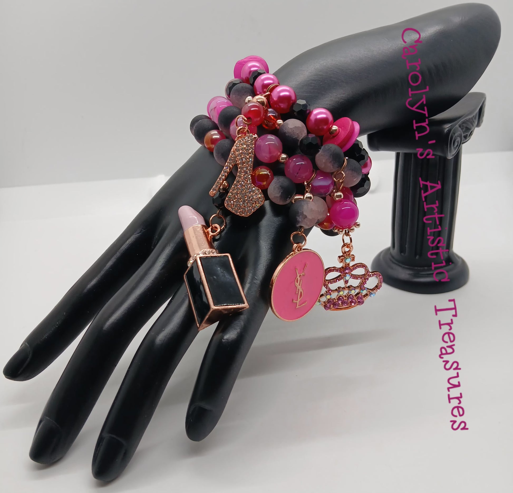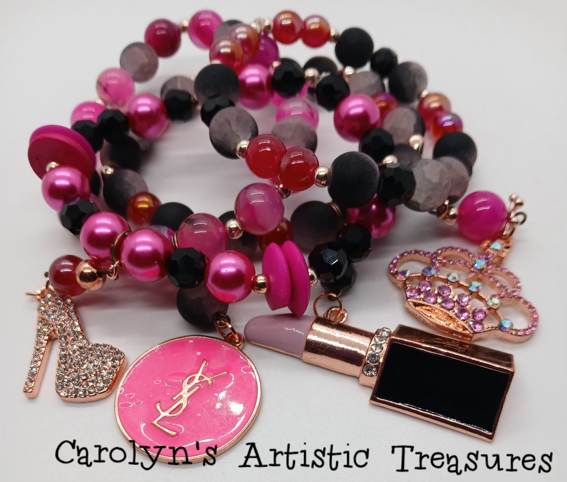 Two of my favorite colors together, Pink and Black!! I added Rose gold Charms and Findings!!