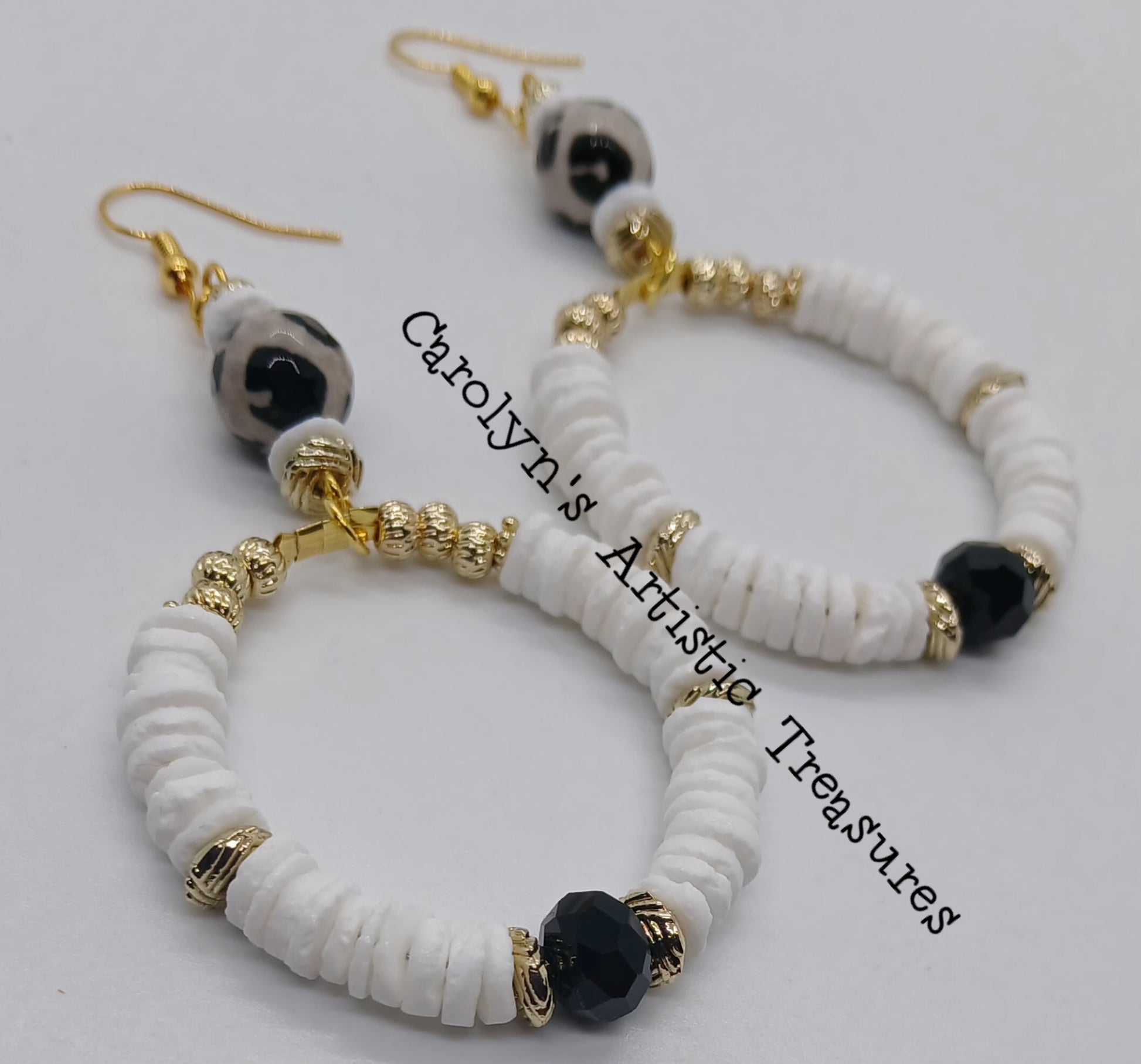 Check Out This Super Cool Stack Bracelet Set!! Those Black and Tan Spotted Beads paired with those Crispy White Heishi Shells, give this Design LIFE!!